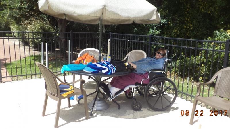 Eileen on the pool patio at Monk's Corner, South Carolina